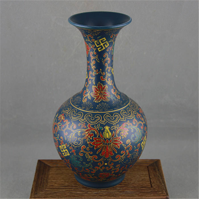 Jingdezhen fatti a mano antico famille rose in ceramica blu scuro vasi per la raccolta