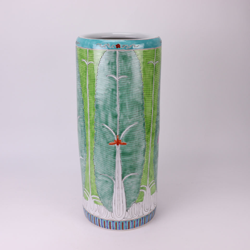 Jingdezhen Qing Dynasty Elegant Cabbage Hand-Painted Ceramic Floor Vase Antique Chinese Porcelain Bok Choy Umbrella Stand