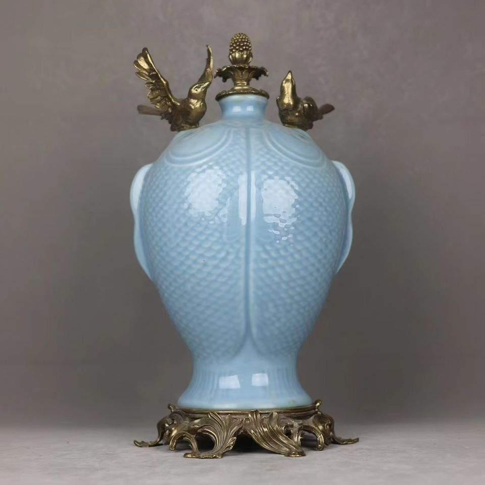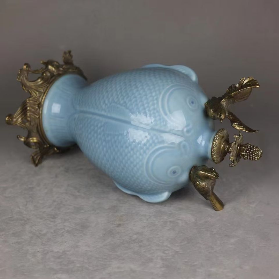 Jingdezhen Royal fornace blu smaltato rame intarsiato vaso in porcellana asta di fascia alta antico palazzo ceramica vaso a doppio orecchio