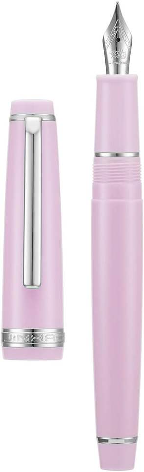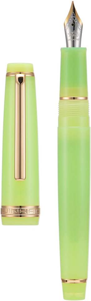 Penna Stilografica Jinhao 82 in Acrilico con Pennino Medio in Iridio e Convertitore d'Inchiostro, Design Classico Fluorescente per Scrittura Fluida (Finiture Dorate)