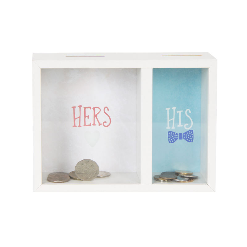 Jinn Home 2 Openings White Wooden Piggy Bank MDF Saving Coin Money Box Printed Glass Cover Stylish Home Decor Safety Conscious
