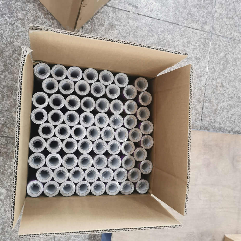 Each roll wapped with shrink film, stick a 4-color printing label, and then put in master carton.
