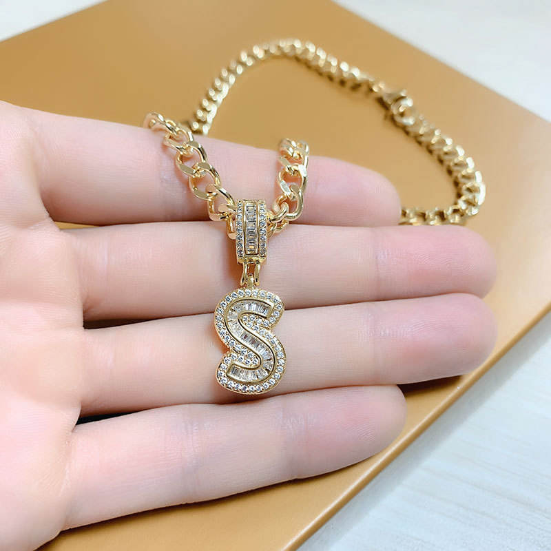 Collana con Ciondolo a Catena Cubana in Oro con Lettere dell'Alfabeto Personalizzate in Zirconi, Stile Hip Hop di Jinyuan Designer