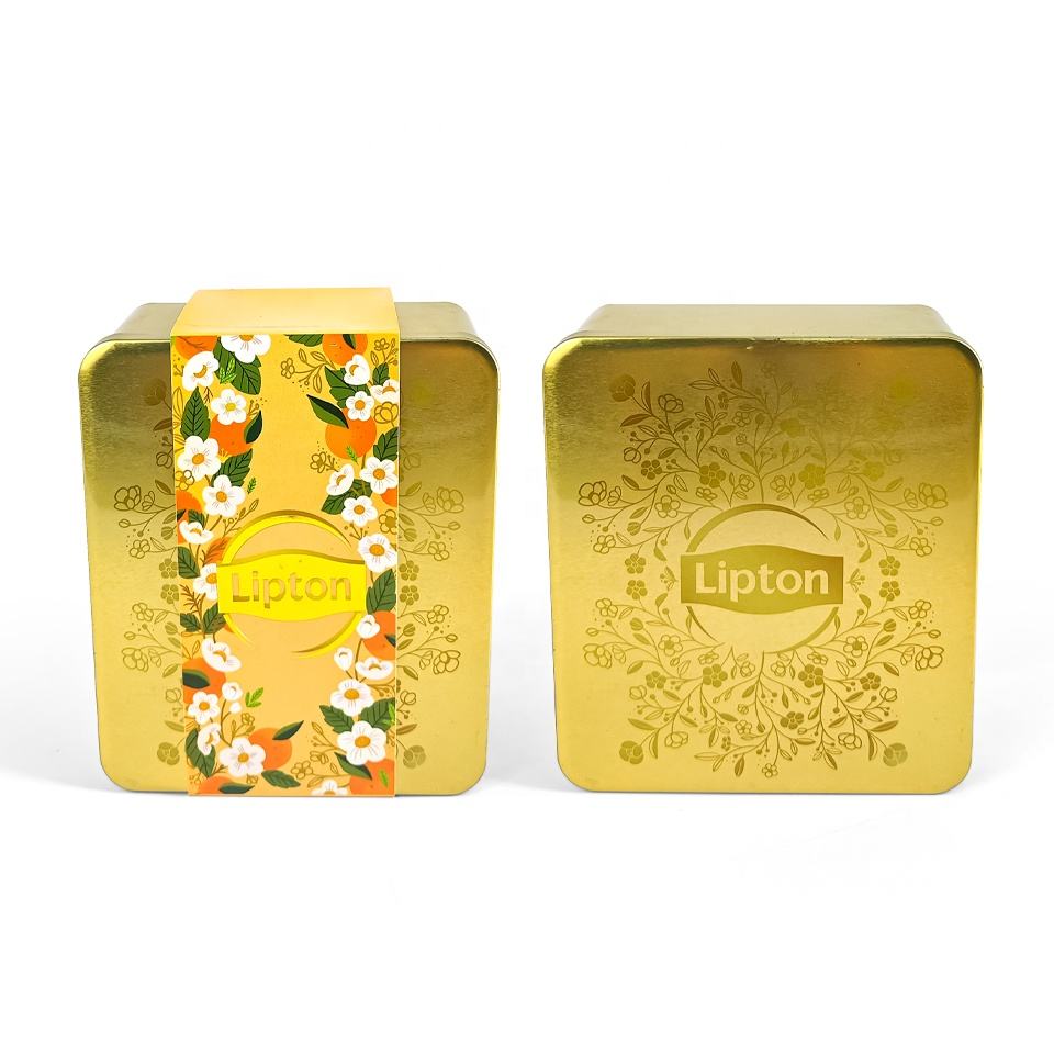 Jinyuanbao Wholesale Shinny Gold Cookie/Biscuit Sweet Metal Square Tin Boxes Food-Grade Gift Package Tin Container with Lid