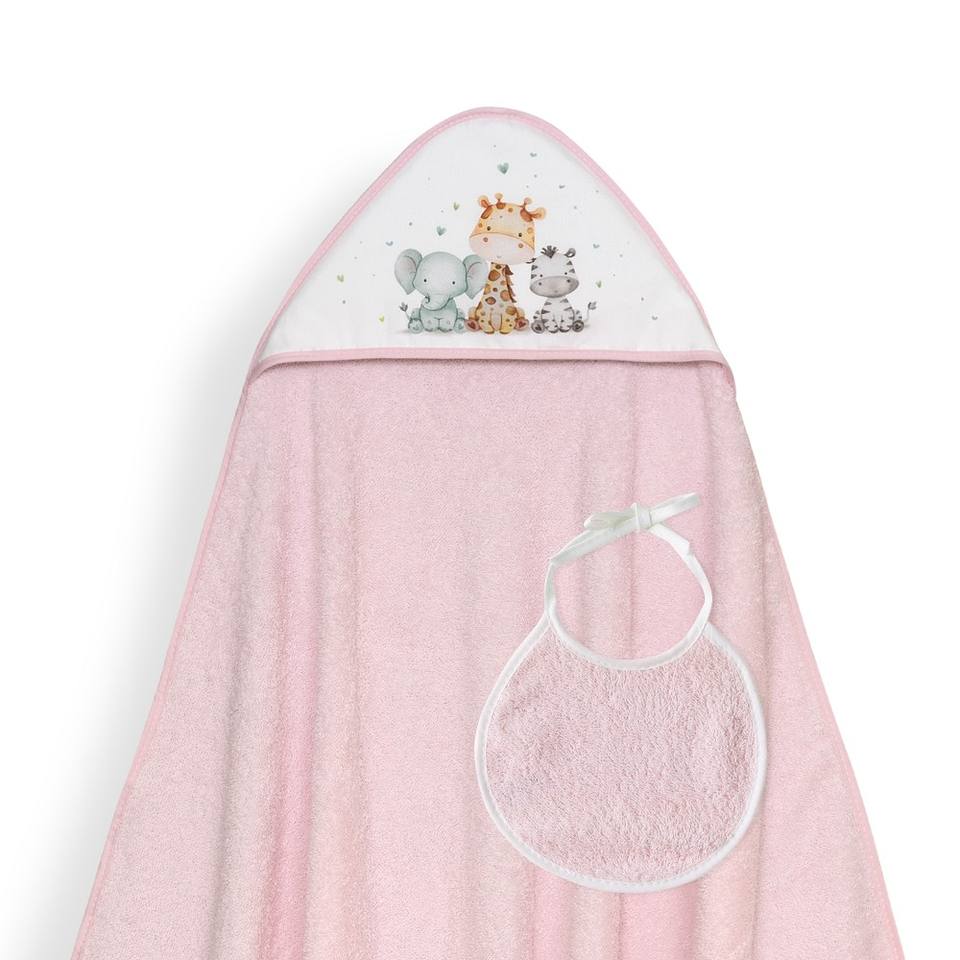 Jirafa-Bicicleta+Baby Bib Set Pink Printed 1X1 MT. Mod Bath Towel for Newborn Terry Cloth Bathroom Use