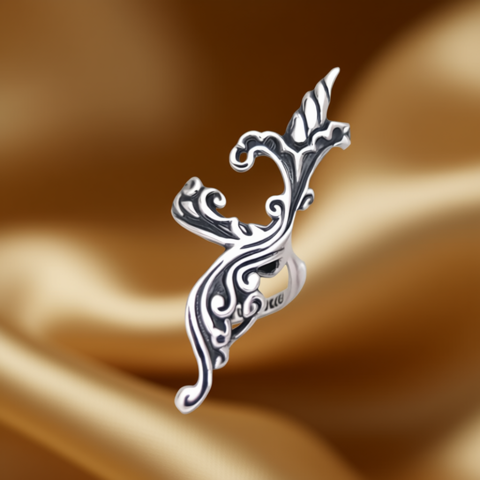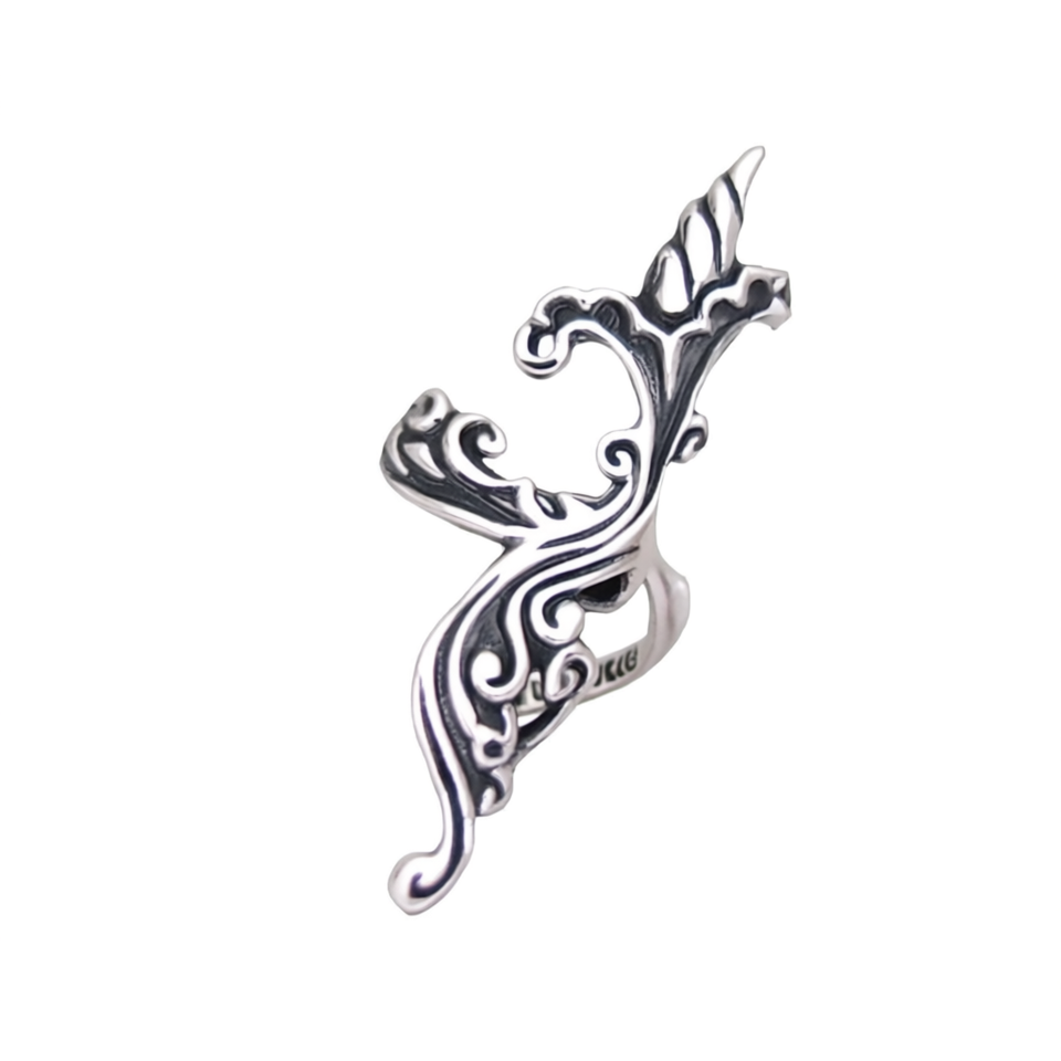 Jkcb Vintage Plant Design 925 Silver Cuff Earrings Unisex Everyday Wear Jewelry