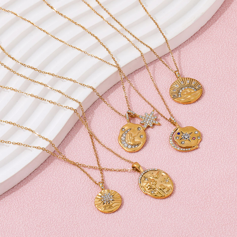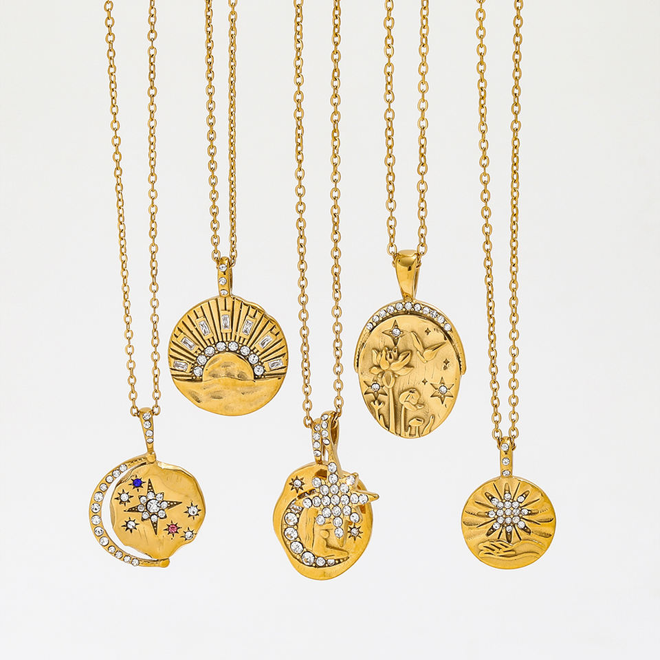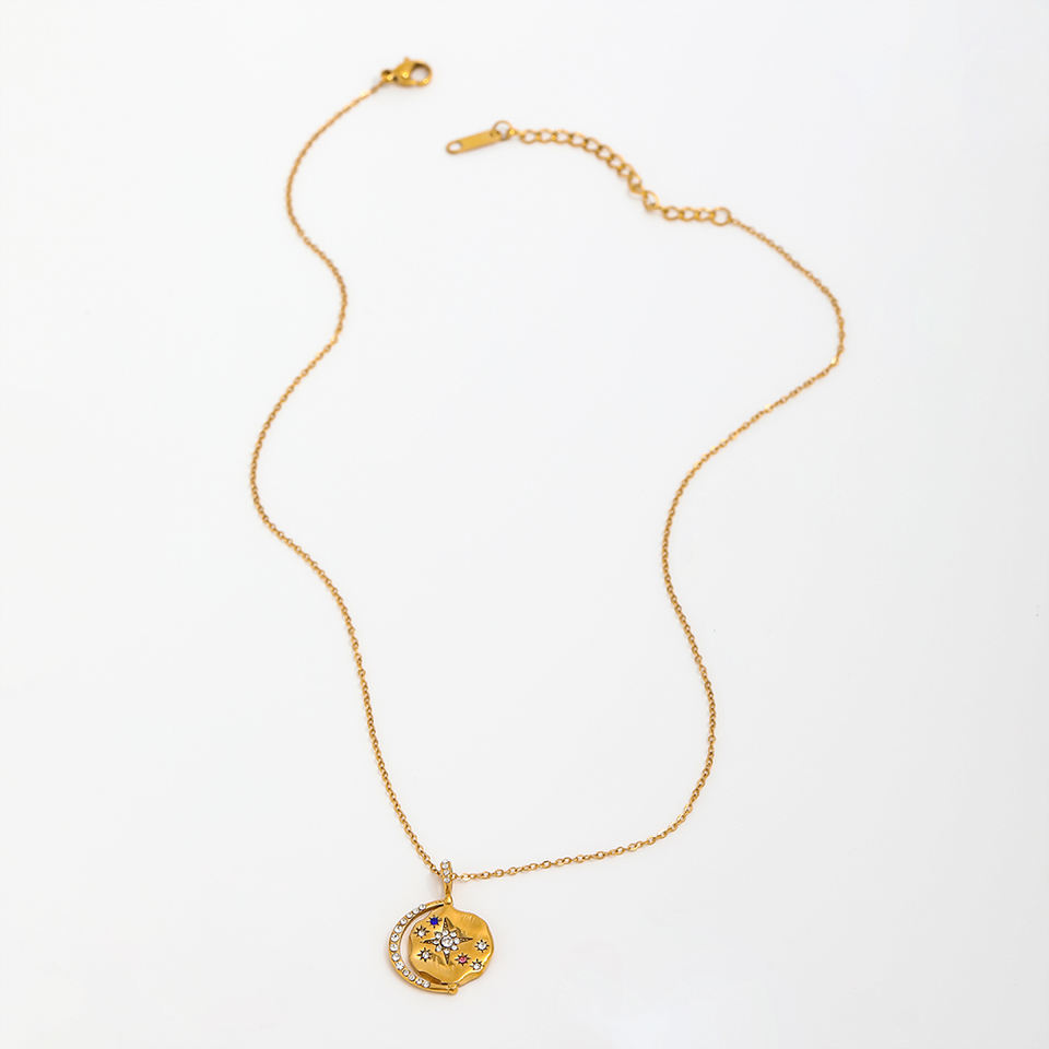Joolim 18K PVD Gold Plated Waterproof Tarnish Free Moon Star Sun Zirconia Coin Pendant Stainless Steel Necklace Fashion Jewelry