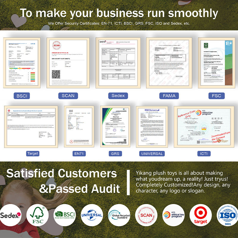 Certificazione:EN-71, ICTI, BSCI, GRS, FSC, ISO e Sedex, ecc.