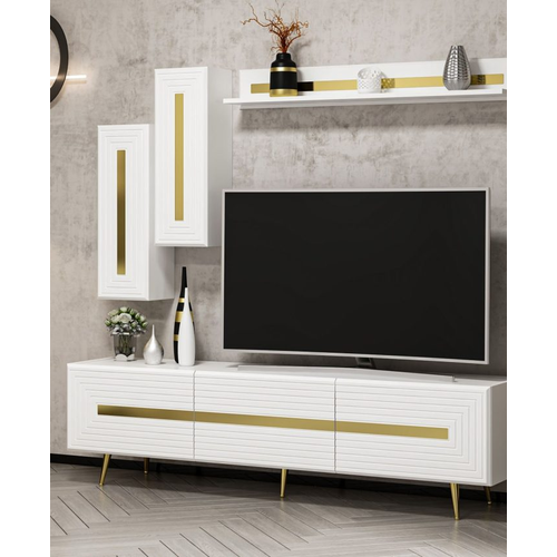 Jose White Membrane Door TV Stand Includes Top and TV-Modern Aesthetics