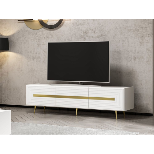 Supporto TV in legno massello HMS 70 blu e bianco con scaffalatura aperta