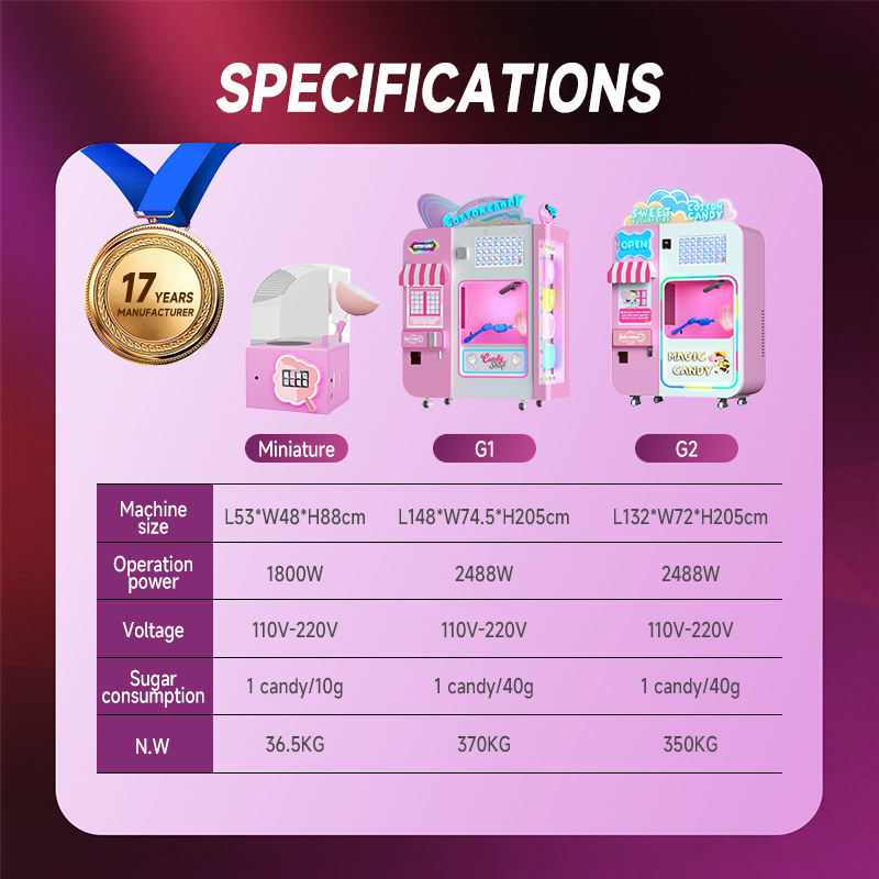 Nome del prodotto:Macchina Automatica Combinata per Zucchero Filato con Pagamento in Monete