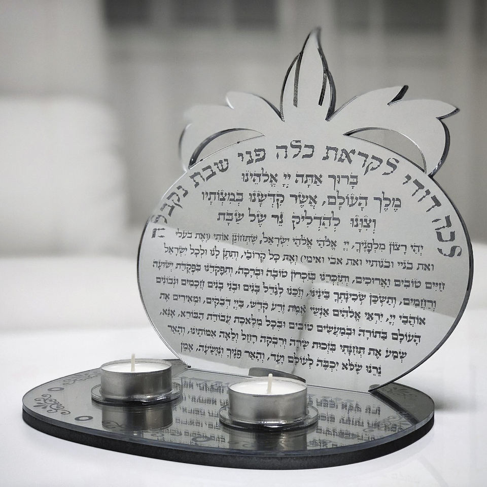 Judaica Acrylic Pomegranate Shape Candle Tray Personalized Towards Shabbat was Accepted Jewish Lucite Menorah Tray Plate