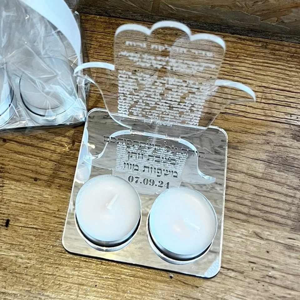 Judaica Shabbat Pomegranate Acrylic Candle Tray Jewish Lucite Menorah