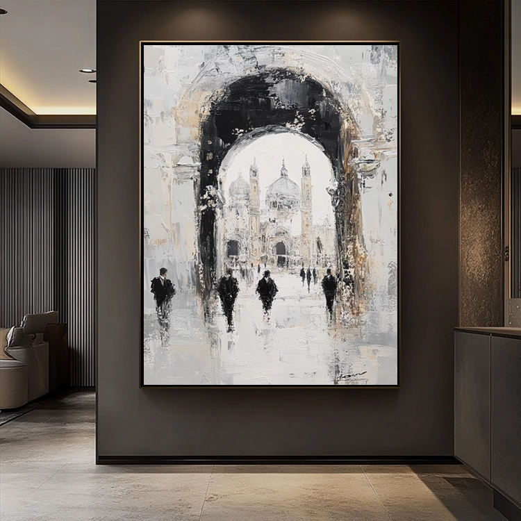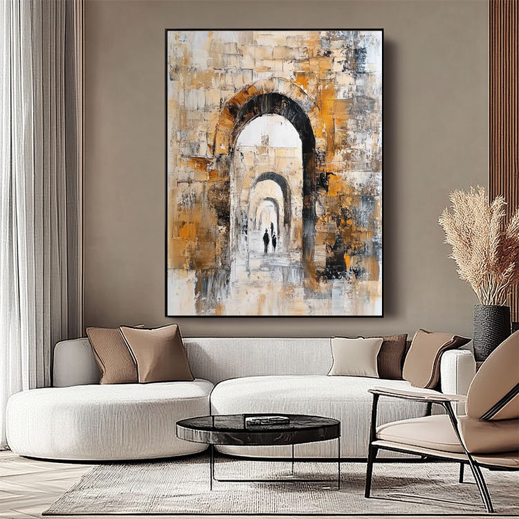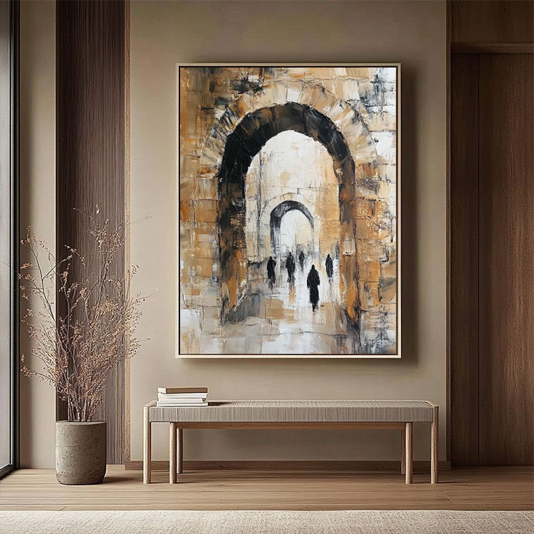 Judaica Gifts Handmade Canvas Beige Jerusalem 3D Acrylic Landscape Paintings Contemporary Jewish Art