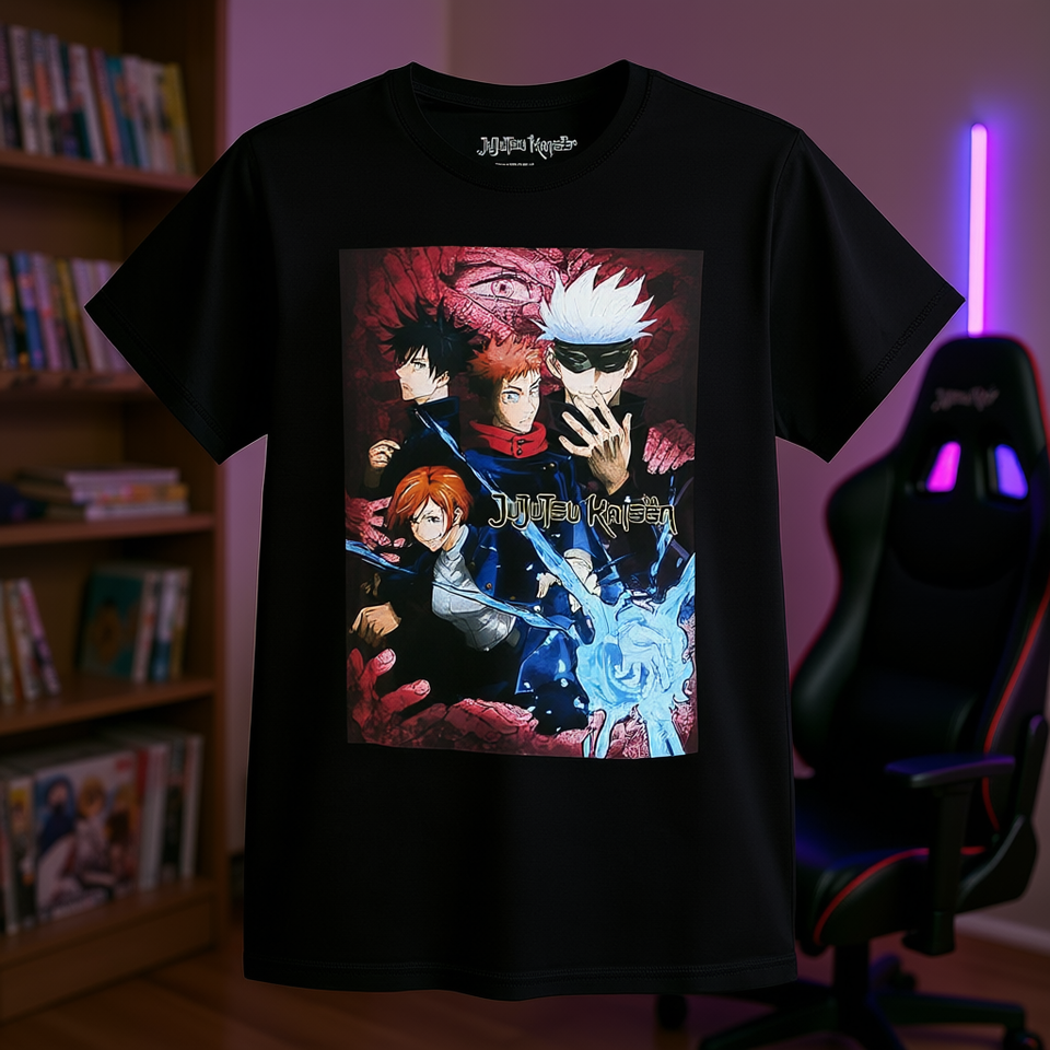 T-shirt da uomo Jujutsu Kaisen Key Visual 2, vestibilità regolare, manica corta, cotone, casual, stampa frontale