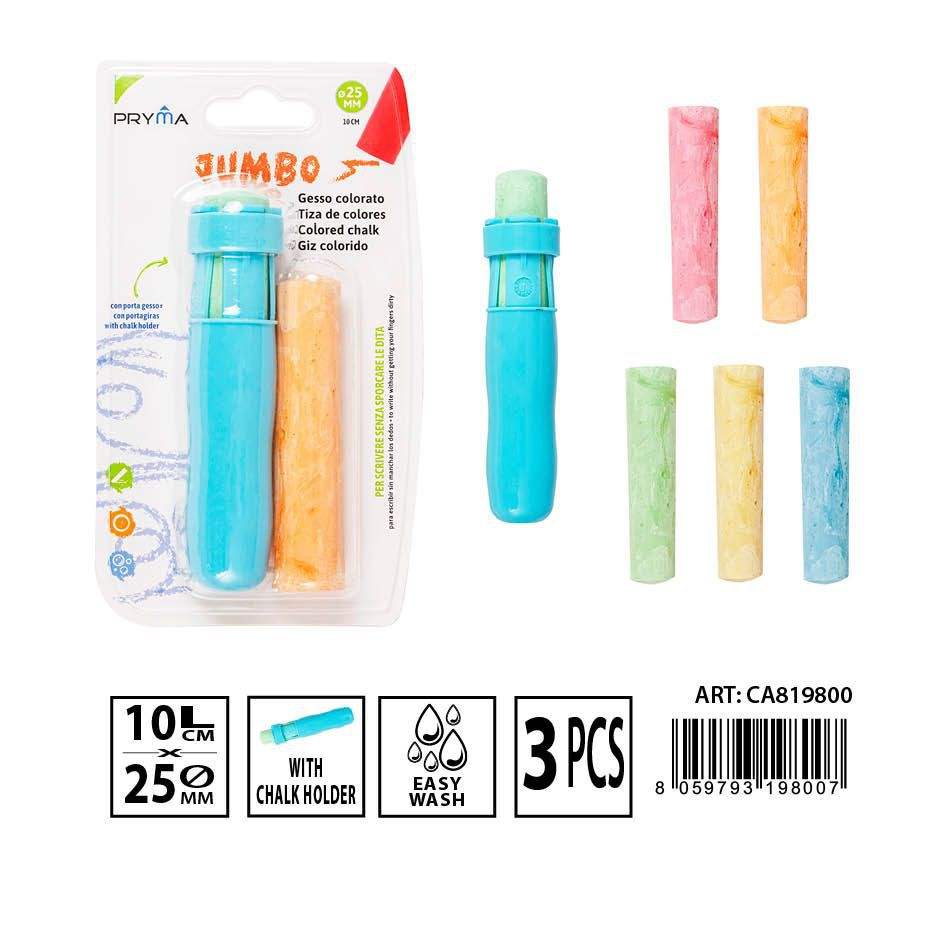 Jumbo colored chalk with chalk cover 10x2.5 cm 3 pieces - Writing utensils