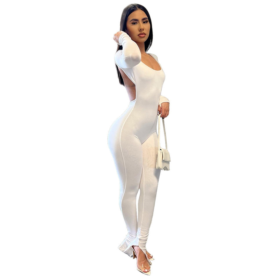 Tute intere da donna a gamba larga, personalizzabili con logo, tute casual da donna con schiena scoperta per allenamento