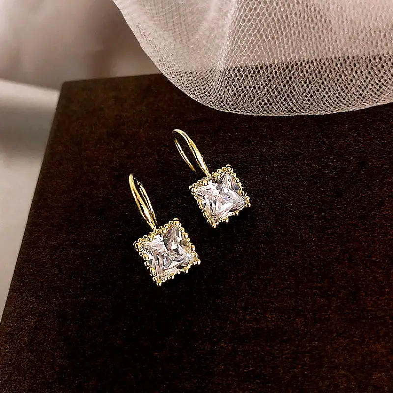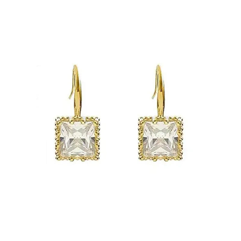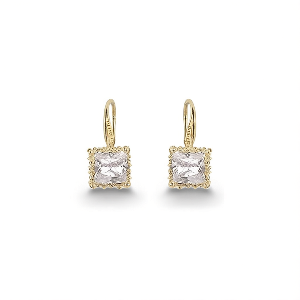 Orecchini Pendenti in Cristallo June Q, Placcati in Oro 18K, Montatura Geometrica Quadrata, Stile Classico per Uso Quotidiano Femminile
