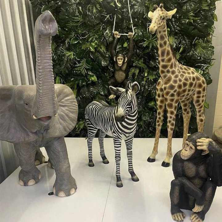 Sculture di Animali della Giungla a Grandezza Naturale, Giraffa in Vetroresina, Decorazioni in Resina per Eventi e Feste
