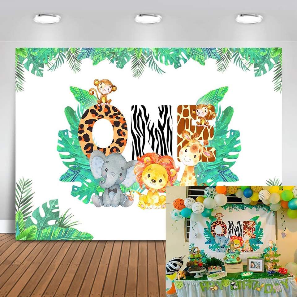 Jungle Theme 1st Birthday Backdrop Safari Animals Background for Boy 7x5ft Vinyl Lion Giraffe Elephant Monkey Zoo Animals Boy