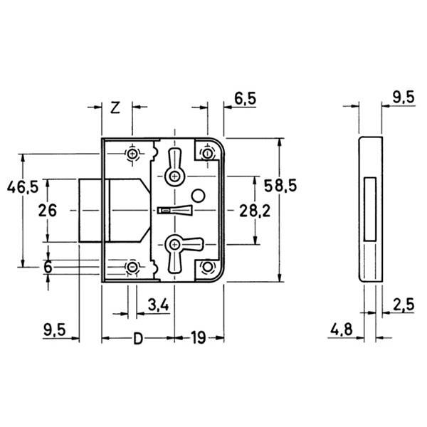 Serratura a mortasa per battenti con chiavistello/catenaccio art. 750 ISEO E15 - 16 mm anteriore