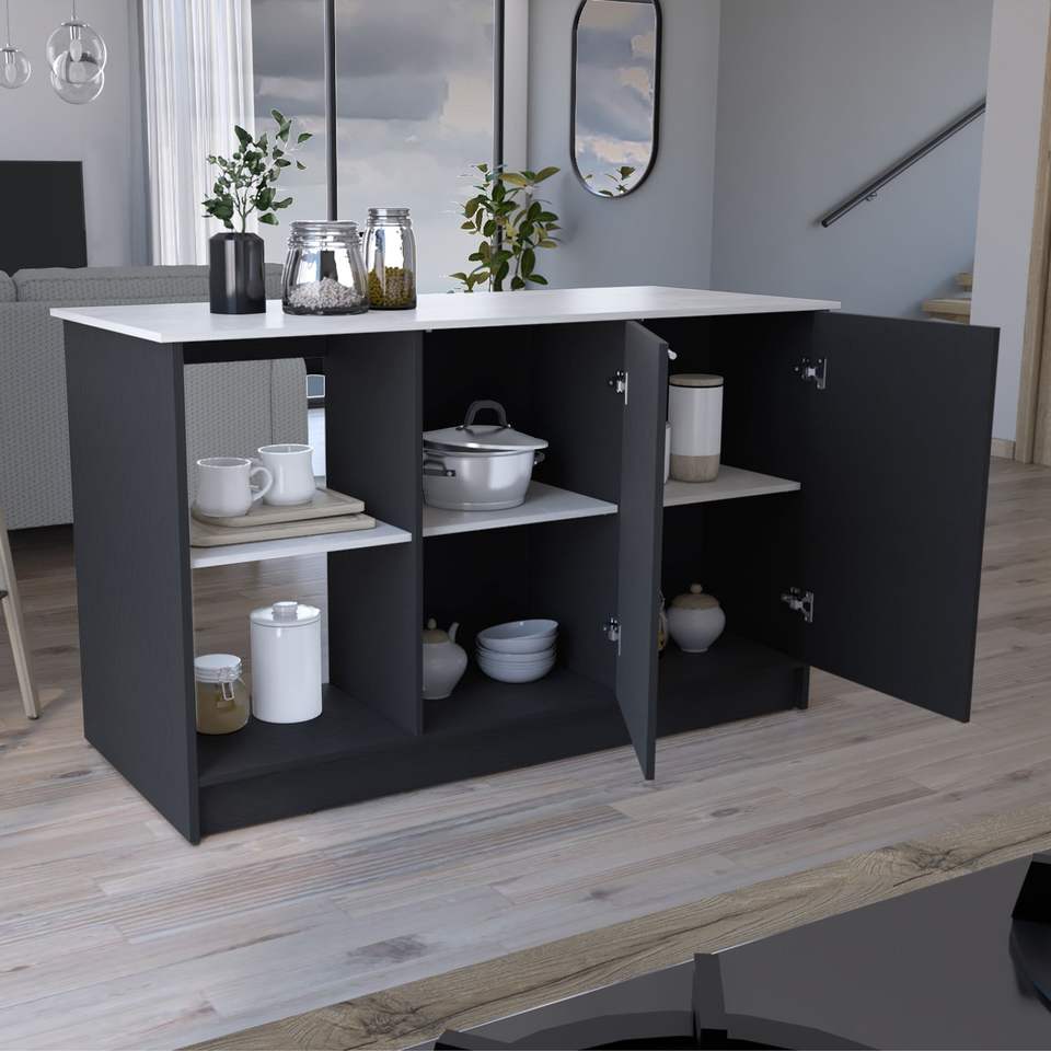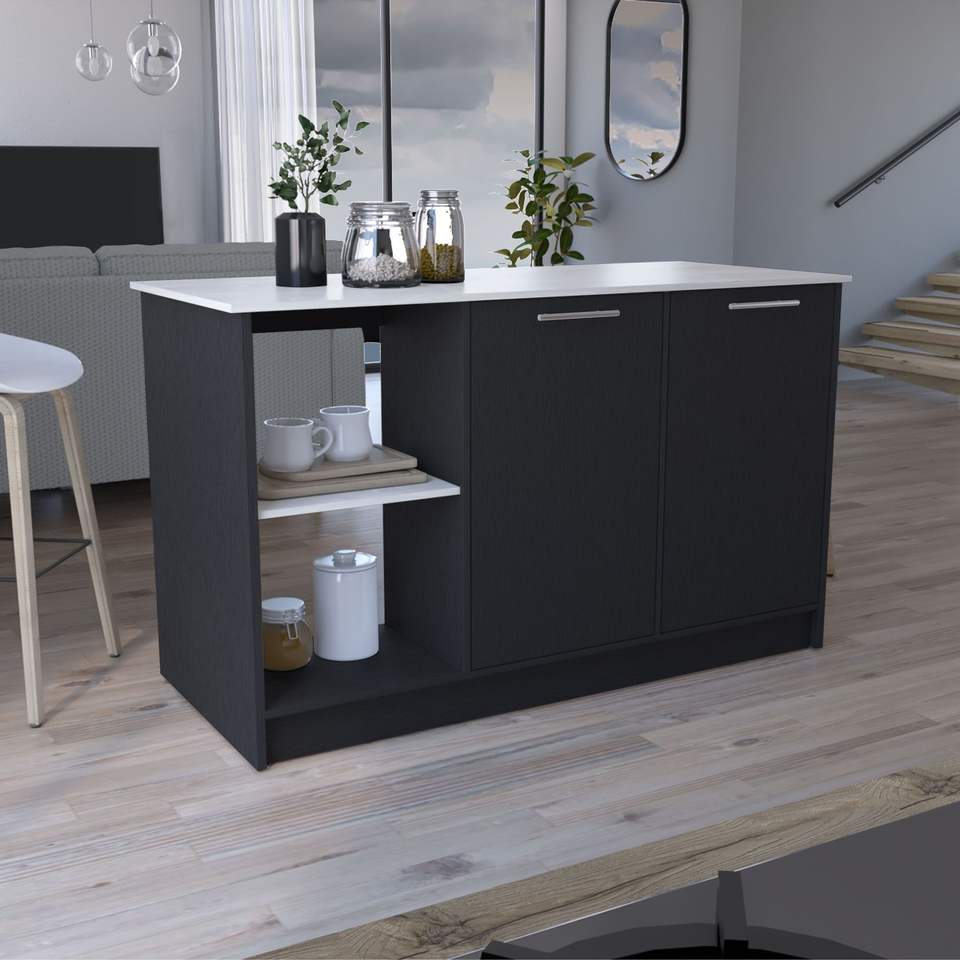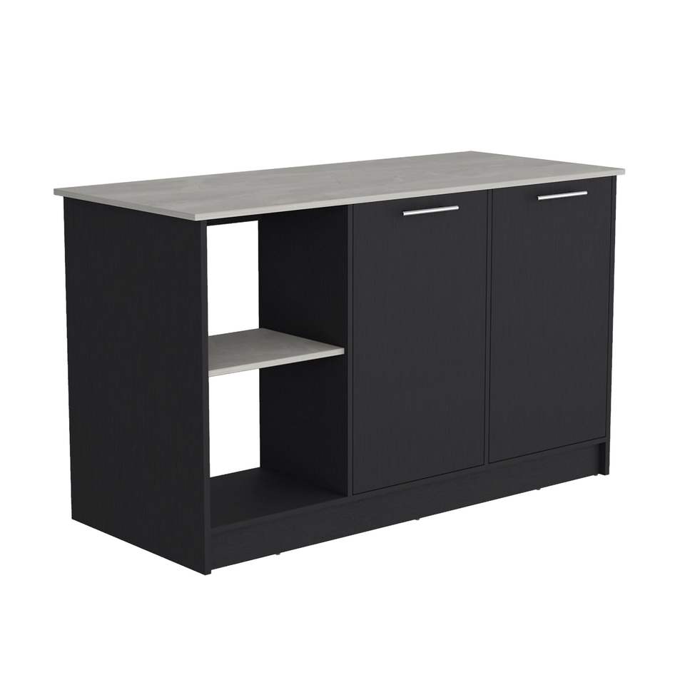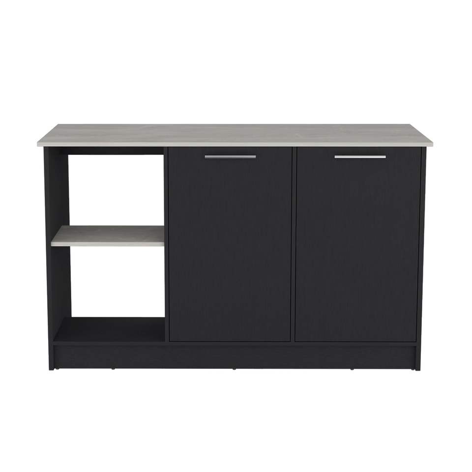 Isola da Cucina Juniper con Mobile a Doppia Anta e Ripiani Aperti, Piano Grande in Marmo Nero/Ibiza