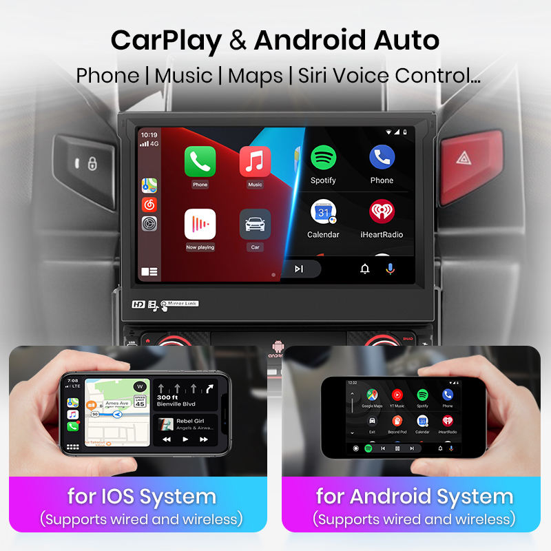Junsun Autoradio 1 Din Android con Schermo Touch a Scomparsa da 7" Carplay Lettore Video Multimediale MP5 Audio Auto Universale Senza DVD