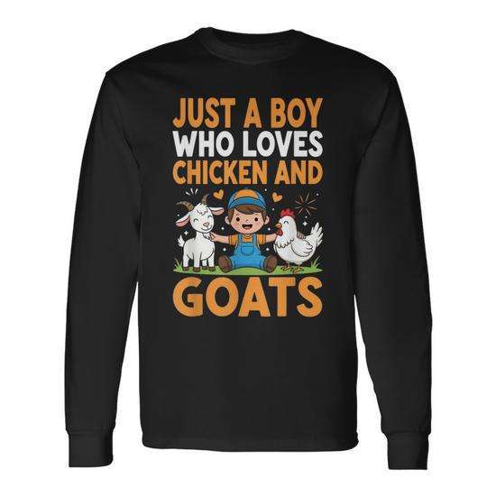 Just A Boy Who Loves Chicken And Goats Maglietta a maniche lunghe