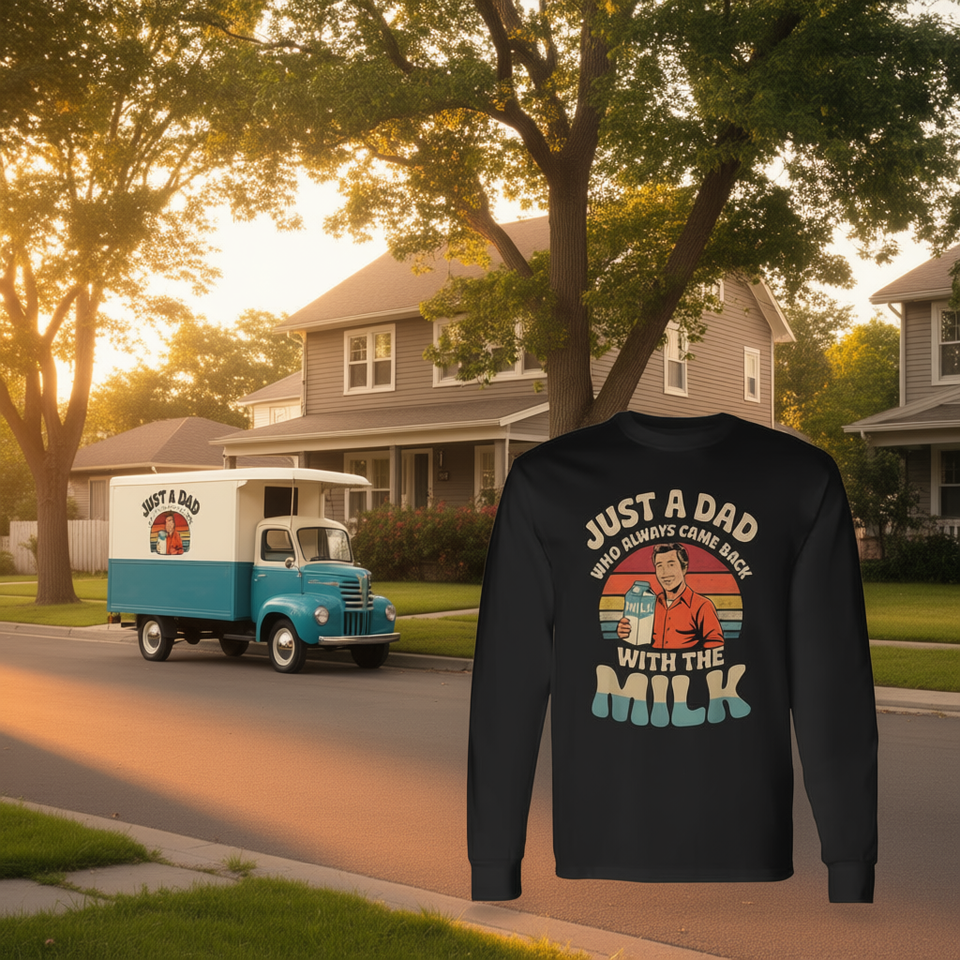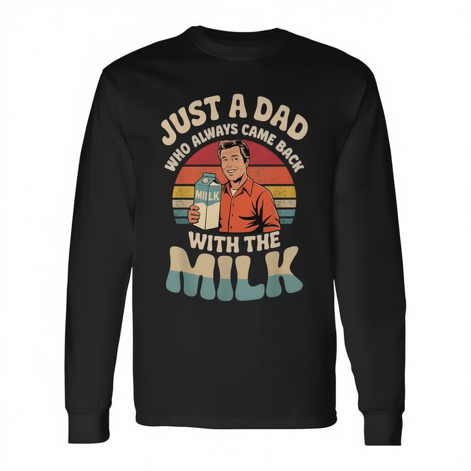 Semplicemente un papà che sempre ritornava con il latte, maglietta a maniche lunghe per la festa del papà