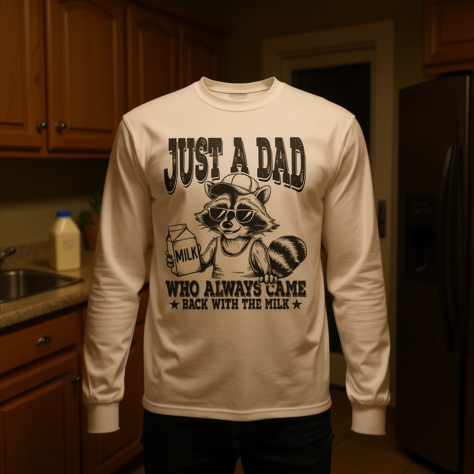 Just A Dad Who Always Came Back With The Milk T-shirt a maniche lunghe da uomo con scollo rotondo e stampa serigrafica