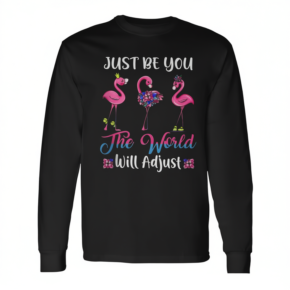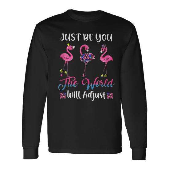 Semplicemente sii tu stesso, la vita si adatterà. T-shirt a maniche lunghe con fenicotteri