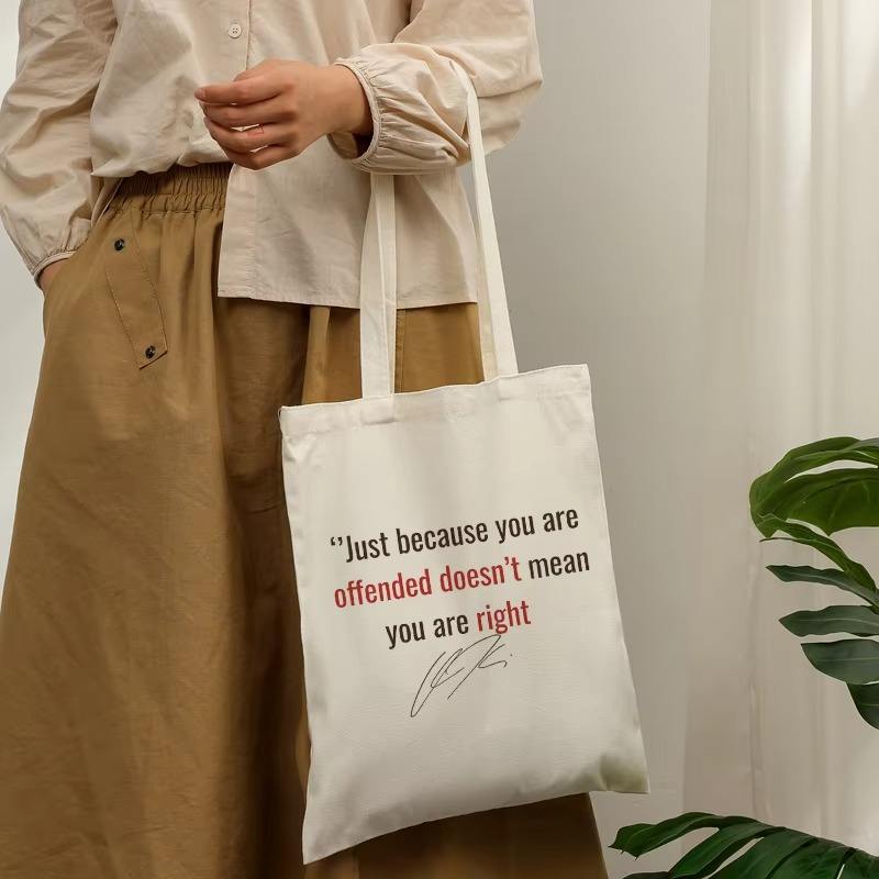 Borsa tote in tela riutilizzabile con stampa della citazione: Solo perché sei offeso non significa che tu abbia ragione - Borsa a tracolla per la spesa