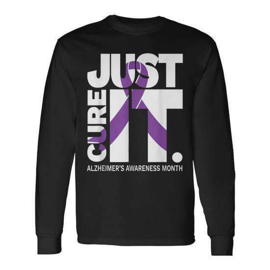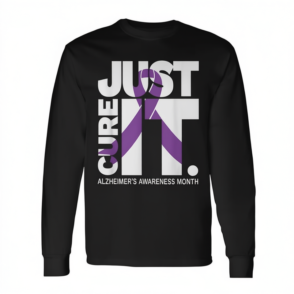T-shirt a maniche lunghe Just Cure IT per la sensibilizzazione all'Alzheimer, design con nastro viola