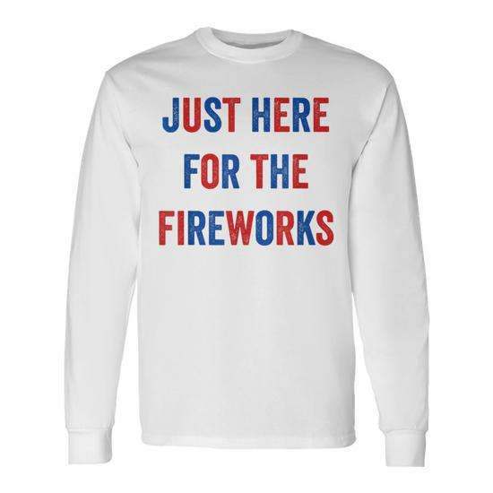 Maglietta a maniche lunghe con stampa “Just Here For The Fireworks”, unisex, girocollo, per adulti, design per il quattro luglio
