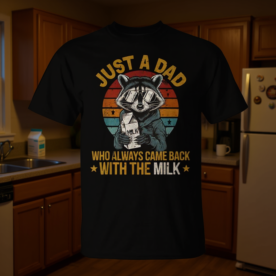 Maglietta personalizzabile per la Festa del Papà con la scritta 'Solo un papà che sempre torna con il latte', regalo promozionale per papà