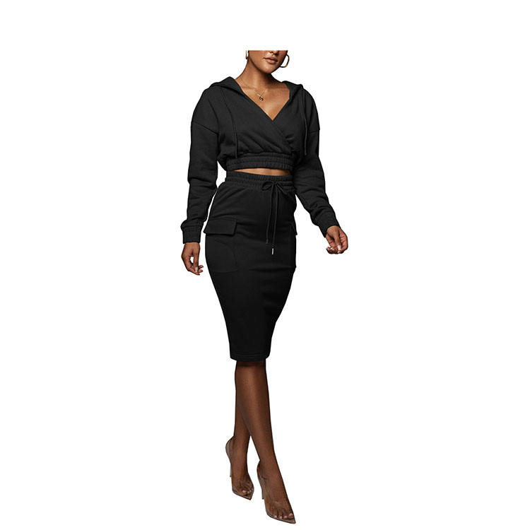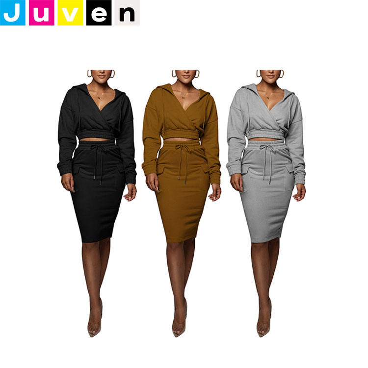 Juven Hot Sales set gonna in due pezzi da donna a manica lunga con cappuccio e ginocchiera da donna set 2 pezzi
