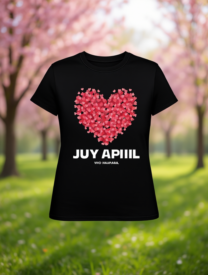 Juy Apiil Women's Heart Pattern Short Sleeve T-Shirt Round Neck Casual Summer Lightweight 100% Cotton Jersey Fabric