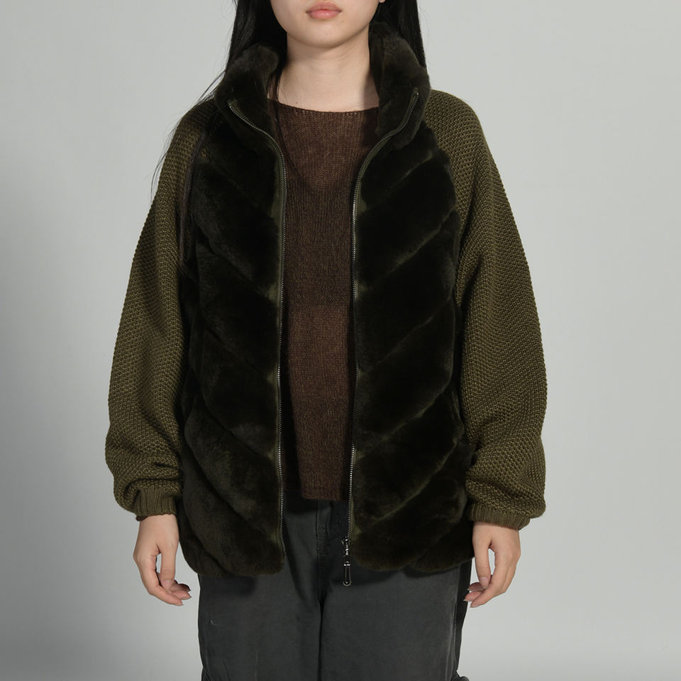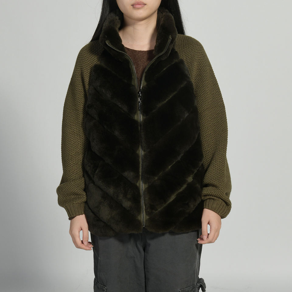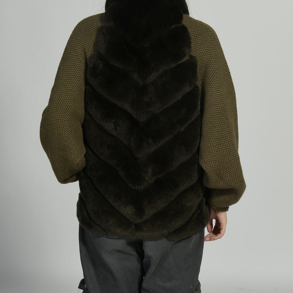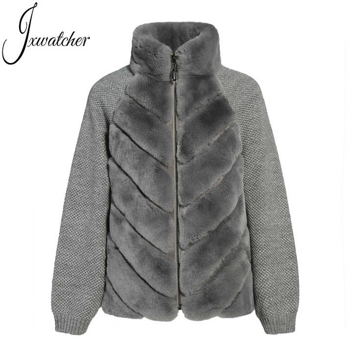 Jxwatcher Casual Ladies Long Sleeve Fur Vest Crochet Women Wool Knit Cardigan Winter Real Rex Rabbit Fur Collar Women Sweaters