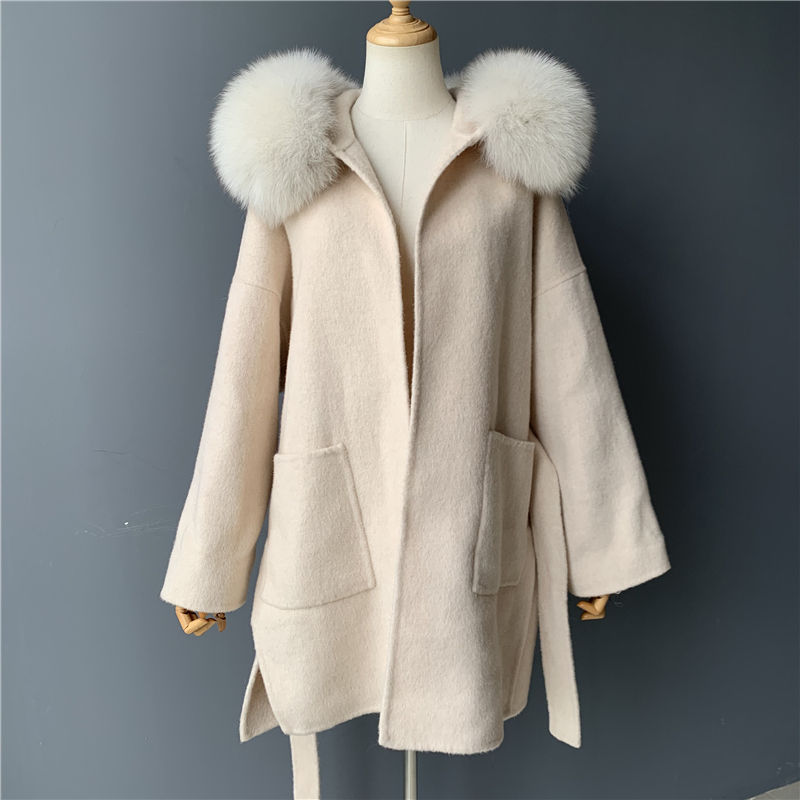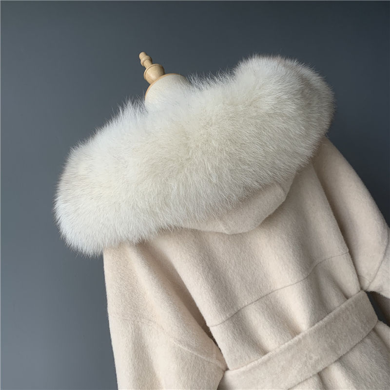 Jxwatcher New Design Loose Size Cashmere Coat Winter Women Warm Fashion Belt Coat Oversize Hooded Long Wool Coats Women