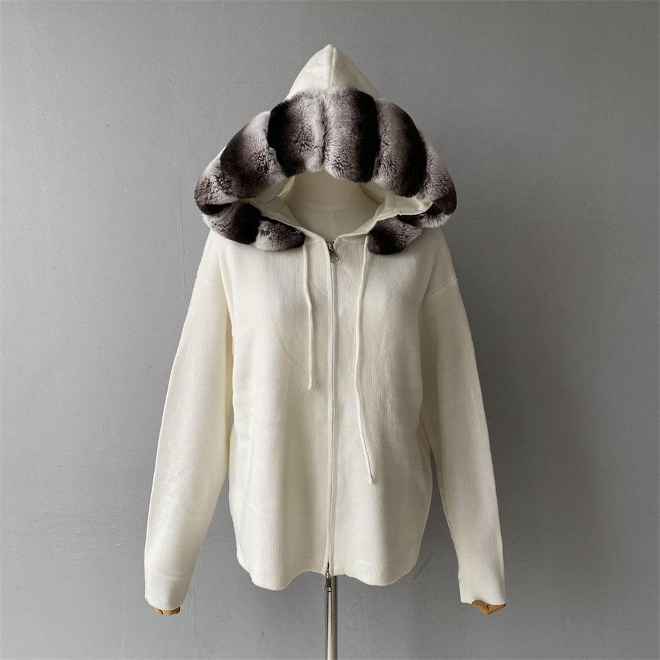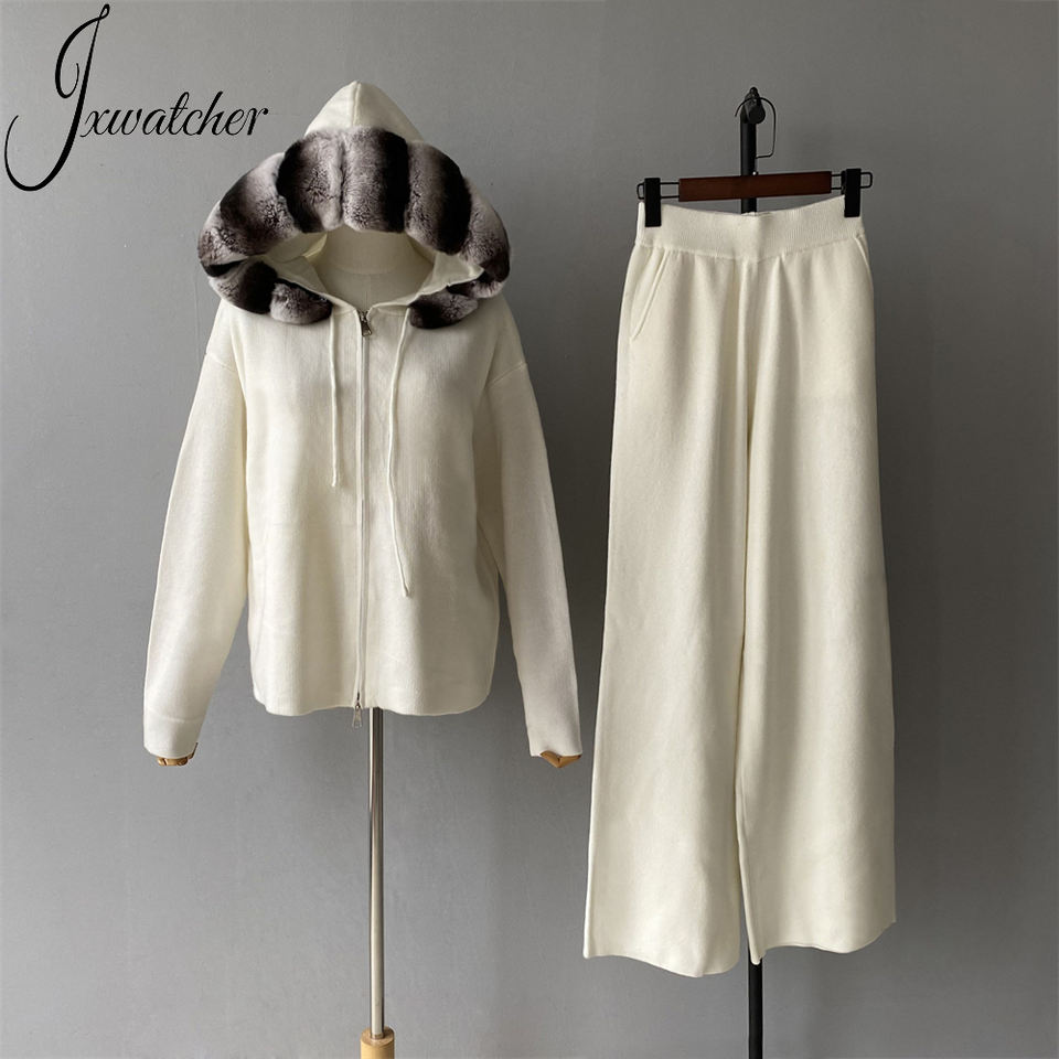 Cardigan anteriore con cerniera in lana lavorata a maglia Jxwatcher pantaloni lunghi con cappuccio a gamba larga set di maglioni da donna personalizzati 2 pezzi stile High Street