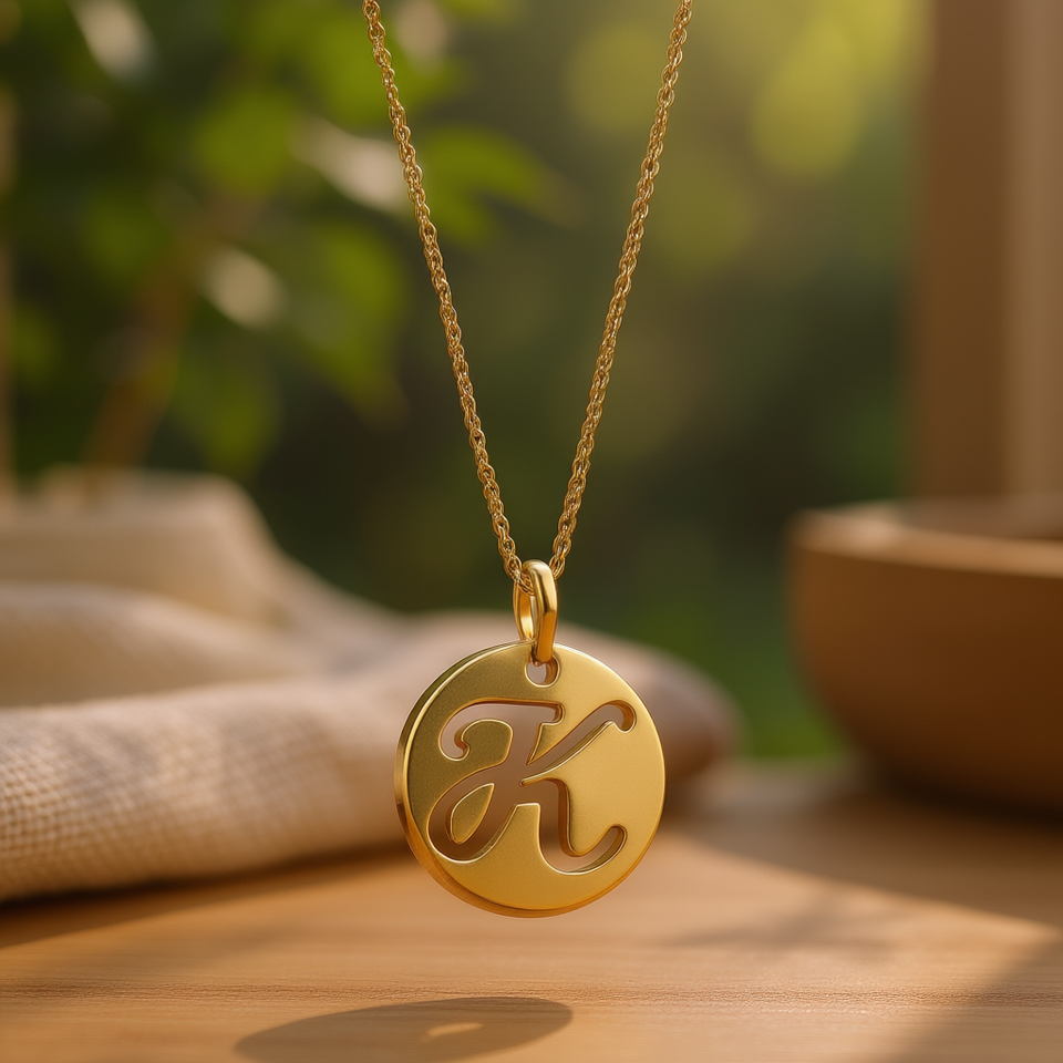 Ciondolo con lettera in acciaio inossidabile placcato oro K da 1,9 cm, ciondolo minimalista per donna, gioielli raffinati da indossare tutti i giorni