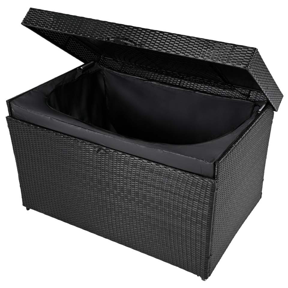K&K 230 Gallon All-Weather Outdoor Storage Box Wicker Deck Bin Wheels for Patio Furniture Pool Storage Garden Tools-Black