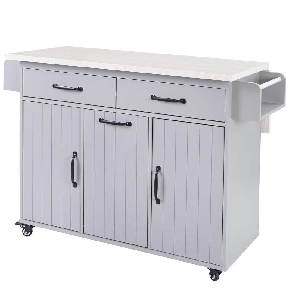K K Kitchen Island with Trash Can Storage Cabinet Drop Leaf Kitchen Cart with Spice Rack Towel Rack Drawer Rolling