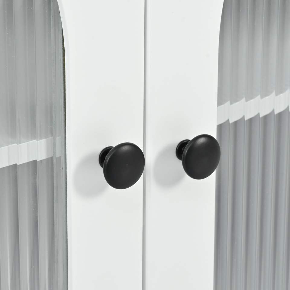 Isola da Cucina Mobile K K con Luci LED e Prese di Corrente, Tavolo Allungabile con 2 Ripiani in Vetro Scanalato