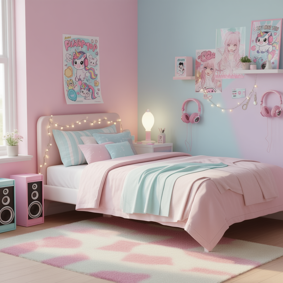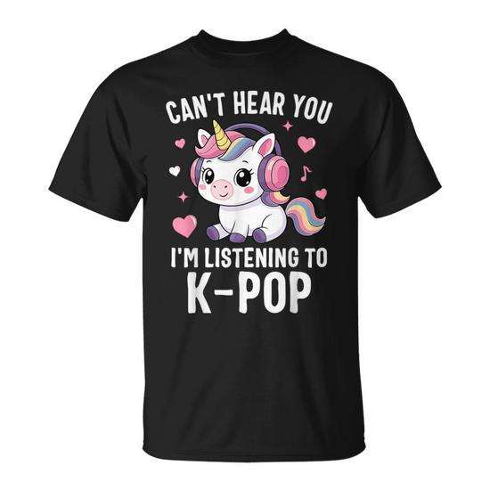 Maglietta K-Pop con stampa 'Can't Hear You I'm Listening To K-Pop' - Design Kawaii per Ragazze
