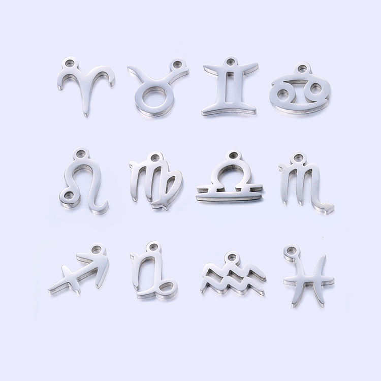 K156 Wholesale 18K Gold Plated Stainless Steel Waterproof DIY Horoscope 12 Zodiac Sign Astrology Fashion Jewelry Pendants Charms