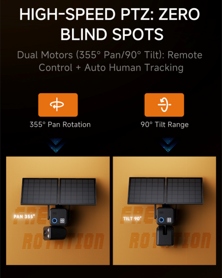Telecamere di Sorveglianza Solari KAANKSY AI AOV 4G con Registrazione 24/7, Zoom 20X, Tracciamento Automatico, Pannello Solare 16W, IP66, Comunicazione Bidirezionale