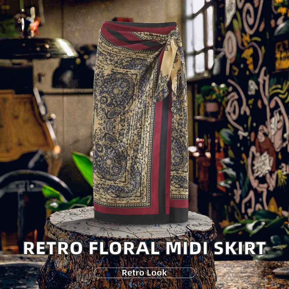 KAR&OT ZA 2025 Autunno Inverno Nuovo Abito Floreale Vintage alla Moda Casual Elegante Stampato a Vita Media Stile Avvolgente Lunghezza Polpaccio Traspirante