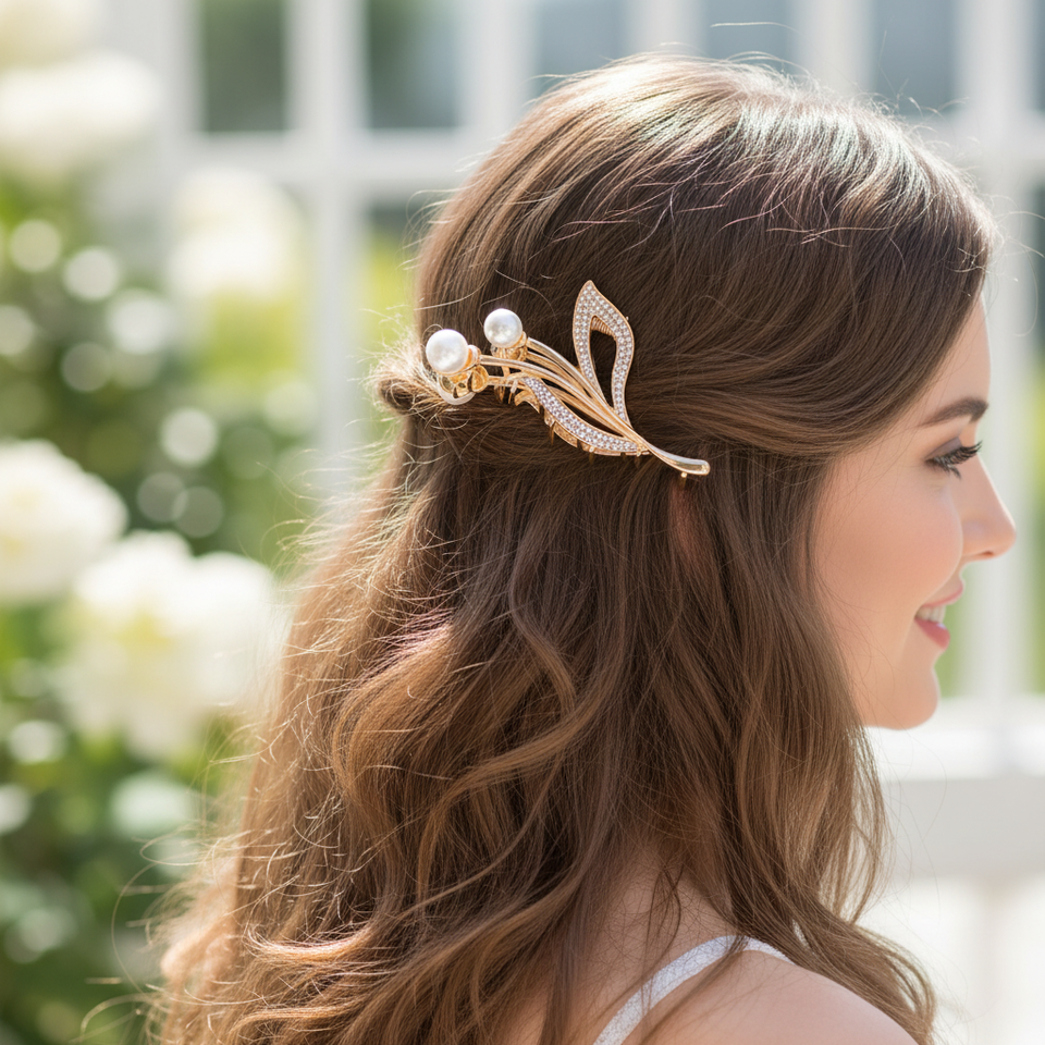 Fermagli per capelli oro KC con foglie eleganti e accessorio di perle per lo Styling dei capelli