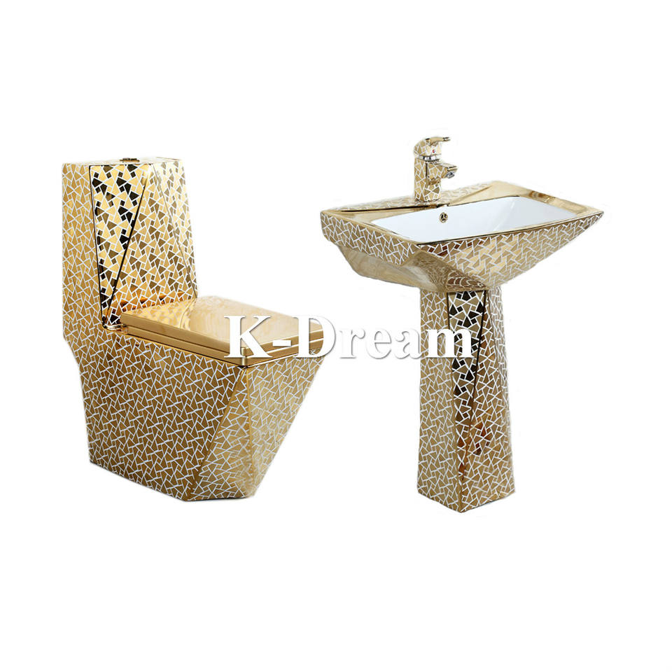 Lavabo in ceramica KD-23GBA con piedistallo, fantasia colorata e motivo dorato, in vendita - Lavabo a colonna per sanitari di Chaozhou